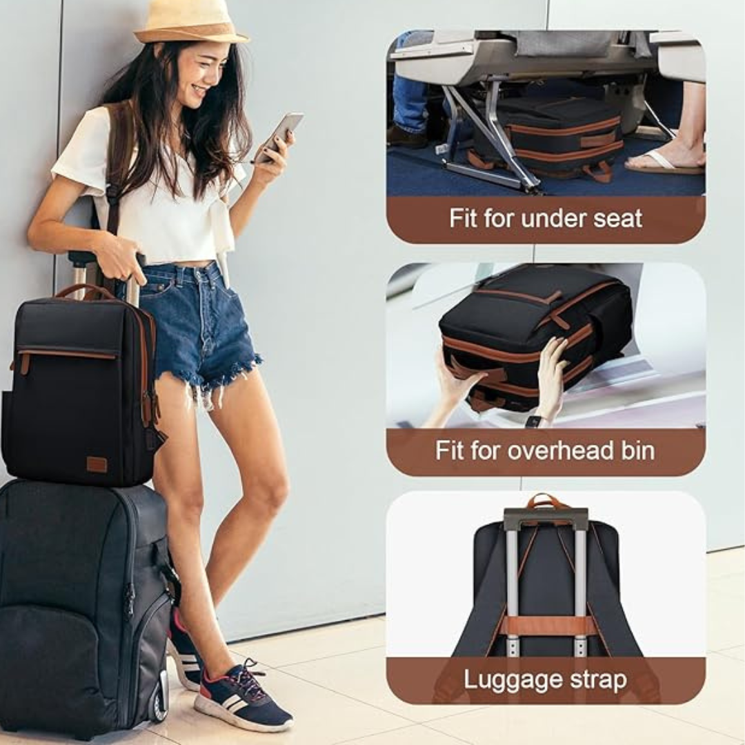 Parfait pour vos voyages en avion ! Ce sac s’adapte facilement sous le siège ou dans le compartiment supérieur.
