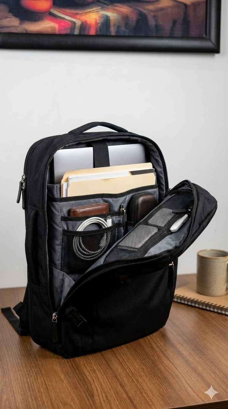 Conçu pour faciliter votre organisation, ce sac à dos dispose de plusieurs compartiments bien pensés. Il permet de ranger efficacement ordinateur portable, documents, accessoires et objets personnels. Chaque espace est optimisé pour un accès rapide et pratique, afin de garder vos affaires toujours à portée de main.